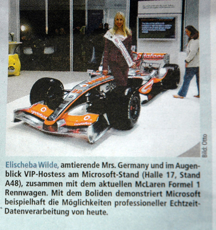 Elischeba 25/04/2008 Mrs. Germany als VIP-Hostess am Microsoft-Stand . Quelle: Messezeitung Hannover Messe April 2008 Mrs. Germany und Model: https://www.Elischeba.de Teile diesen Beitrag mit deinen Freunden Das könnte dir auch gefallen:Astaxanthin – Energie, die du spürstGassiwege im Münsterland: Die Top-TourenRegen in Grömitz und schlechte Laune? So überstehst du den …Mamafrust – Täglich grüßt das Hamsterlaufrad Vorheriger Beitrag Mrs Germany kämpft für bedrohte Haie Next Post „Technik wird immer schöner“ – Mrs. Germany auf der Hannover Messe Schreibe einen Kommentar Antwort abbrechenDeine E-Mail-Adresse wird nicht veröffentlicht. Erforderliche Felder sind mit * markiertKommentar * Name * E-Mail-Adresse * Website Meinen Namen, meine E-Mail-Adresse und meine Website in diesem Browser für die nächste Kommentierung speichern.