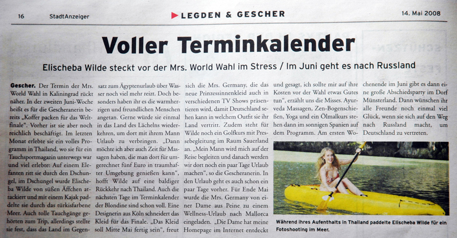 Thailand Aufenthalt vor der Wahl zur Mrs. World in Kaliningrad im Juni 2008. Bilder vom Weltfinale hier.
