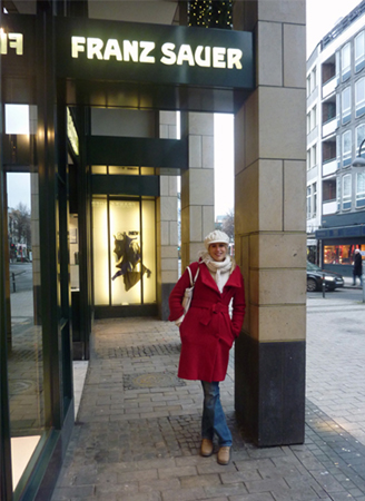 „Oh, das sieht ja alles sehr edel aus“, war die erste Reaktion meines Liebsten, als er mit mir auf das chice Modehaus Franz Sauer zulief. Ein Foto für Dich, lieber Leser, musste her. 1992 hatte ich in diesem noblen Hause als 16-jähriges Küken der Firma in der Debitorenbuchhaltung angefangen zu arbeiten. Als Model wurde ich von einer Angestellten aus dem Verkauf schon damals entdeckt, doch hatte ich erst ein halbes Jahrzehnt später mit meiner Künstlerkarriere angefangen.