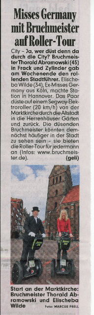 Deswegen ist ein Sat.1 Kameramann auf Inlinern vor uns her gedüst, um unsere Segway Fahrt durch Hannover filmisch festzuhalten. Die ersten Versuche, auf einem Zweirad ohne Bremse auf der Stelle zu stehen, sahen alles andere als „lady like“ aus.