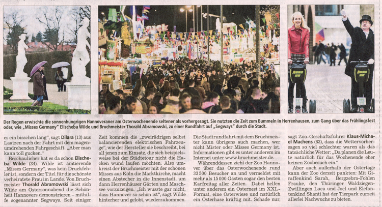 Ob Bildzeitung, neue Presse, Hannoversche Allgemeine oder das Fahrgastfernsehen – auch sie haben unseren Trip auf dem Zweirad festgehalten. Man denkt es nicht, aber auch Weltenbummler sind zwischendurch einmal zu Hause. Die Woche vor Ostern haben wir mit Begeisterung unsere zuckersüße Nichte Celine und deren Eltern besucht (meine Schwester Hannah und ihren Mann Peter) und morgen freuen wir uns auf das Eintreffen meines jüngeren BrudersDavid und seiner hübschen Frau Corinna.
