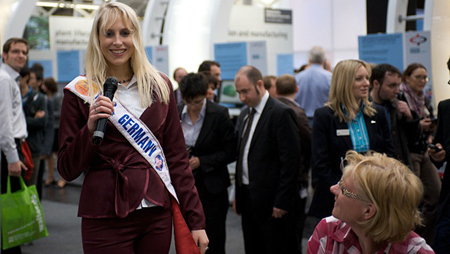 In einem amerikanischen Unternehmen gibt es kein „Sie“. Sympathiepunkt Eins war darum schnell vorhanden. Damit die Hostessen und ich eine gewisse Grundkenntnis haben, war ein Briefing angesagt. Wir sollten ja nicht nur schön, sondern auch schlau erscheinen. PTC steht grob gesagt für die Herstellung und Wartung von Software in der Produktentwicklung, Produktanalyse und Produktdaten Management. Ich fand es faszinierend, wie detailliert die Mitarbeiter eine Idee oder Konstruktionsberechnung im Computer darstellen konnten. Gewisse Formeln wirkten für mich eher wie „Fachchinesisch“ und mein Respekt für die Personen, die damit gekonnt arbeiten, wuchs schnell. Spannend habe ich einen Film empfunden, der veranschaulichen sollte, das sämtliche Gegenstände, die wir im Laufe eines Tages benutzten, mit PTC Software hergestellt sind. Sogar renommierte Schuhfirmen gehören zu den Kunden der boomenden Firma.