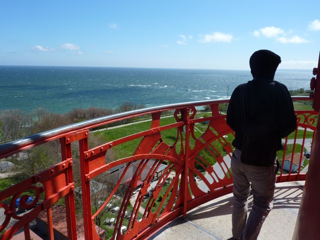 Als der sympathische Rügener später in die Kleinrunde fragt, ob jemand von uns den Leuchtturm besteigen möchte, da sage ich erst mal nur aus einem Motiv zu: warm werden. Schön schnell wetze ich die circa 164 Stufen hoch. Kalt ist mir oben beim laut zischenden Eiswind mehr als unten – dafür muss ich staunen. Was für ein imposanter Rundumblick. Rügen, ich verzeih Dir Deine Kälte!