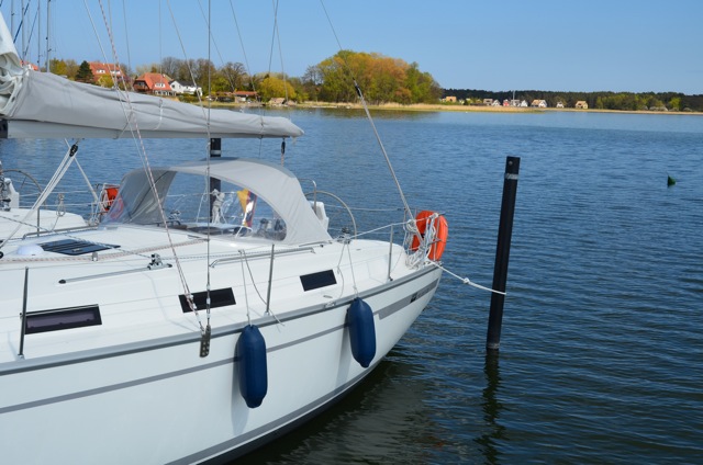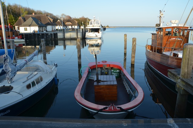 Da es heute viel windstiller als gestern ist, friere ich trotz acht Grad Höchsttemperatur nicht mehr so stark. In der Sonne ist es teilweise sogar richtig schön. In Breege essen wir mit Blick auf den Bodden zu Mittag. Die idyllische Landschaft und der chice Yachthafen sind klasse.