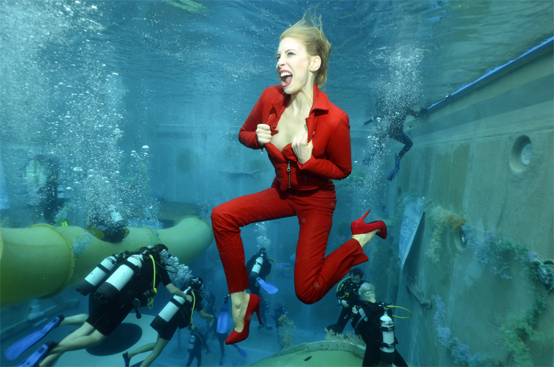 Impressionen aus Wetlook-Shootings und Überwasseraufnahmen, Fashion- und Lifestyle-Shootings in ROT mit Mrs. Germany 2009 Elischeba Wilde