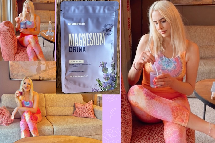 Magnesium trägt nicht nur zu einer normalen Muskelfunktion und zu einer guten Funktion des Nervensystems bei. Sondern unterstützt außerdem den Energiestoffwechsel. Also genau das, was im oft stressigen Alltag schnell mal ins Hintertreffen gerät. BRAINEFFECT bietet Magnesium als leckeres Pulver an, das du in Wasser einrühren kannst. Ich liebe die Variante mit mildem Lavendelgeschmack. Des Weiteren nehme ich mir beim Trinken bewusst einen Moment Zeit. Und gönne mir meinen wohlverdienten Ruhe-Moment im Alltag.